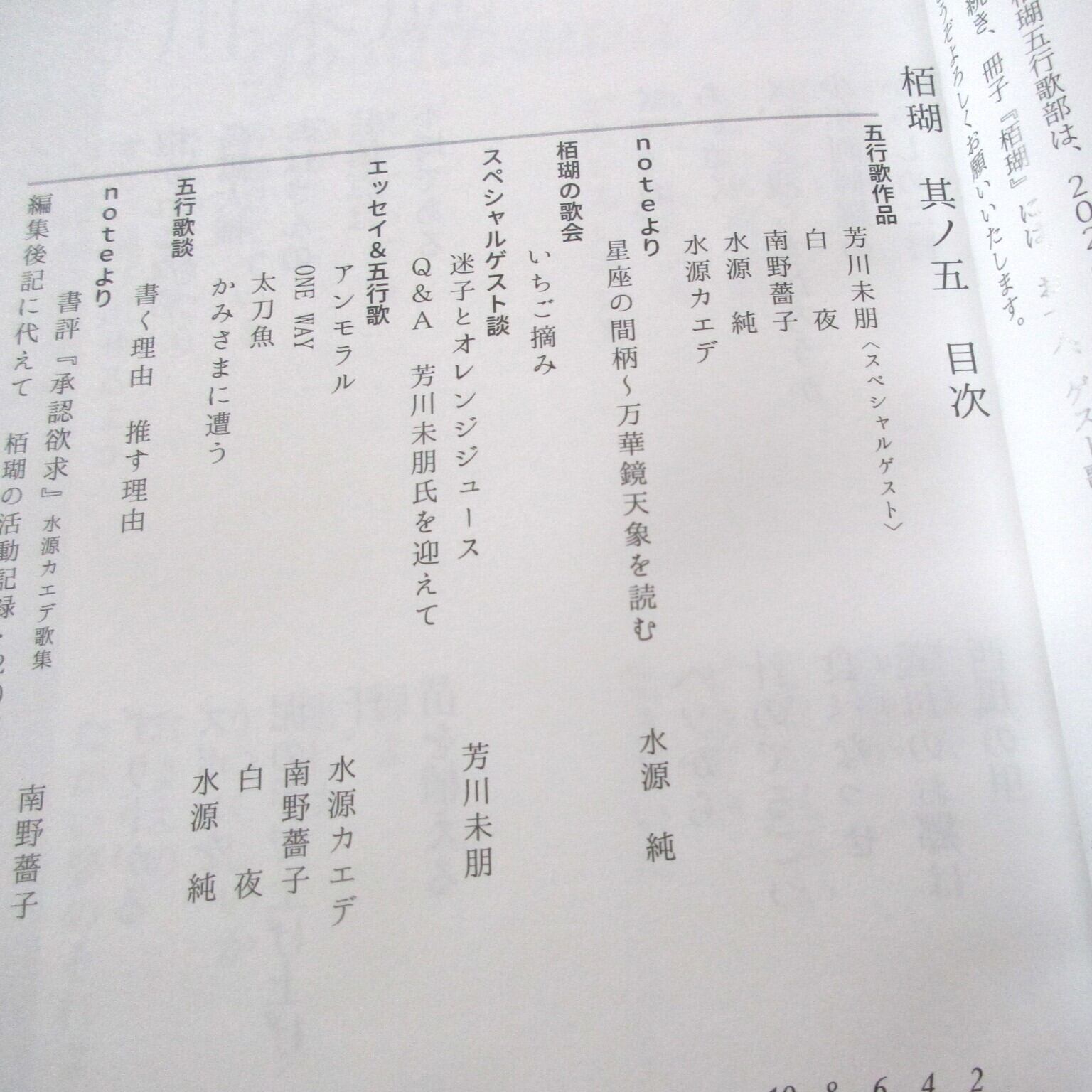 一人文芸倶楽部Tower117の南野薔子が所属している五行歌ユニット「栢瑚」が発行している五行歌冊子の五冊目。